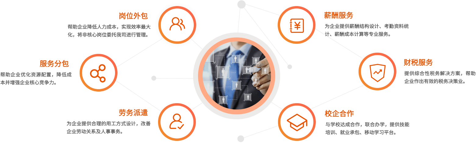 奥联人力资源服务:依托“互联网+人力资源服务”,承接用工单位或个人委托的代理人事管理业务,根据客户需求定制人事方案,满足各类型服务主体对人力资源管理的实际需求。帮助企业人力资源工作者从繁重的日常琐碎事务中解放出来,引导企业更专注于核心业务的发展,聚资源于核心竞争力。